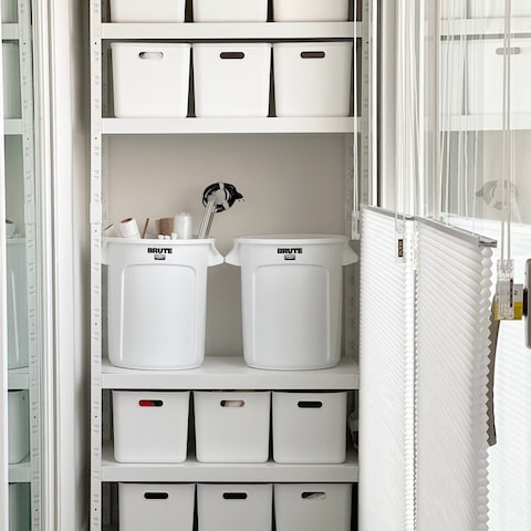 [시스템 4단 선반 80*35cm / 하드웨어 150cm] 베란다 다용도실 공간입니다. 창문 밑에 전자레인지 수납장이 있어서 여러 가지 물건을 수납해서 사용했는데 정리 공간이 더 필요해서 뭘 놓을까 고민이 깊었어요 ㅠㅠ 그러던 중 벽을 활용할 수 있는 선반을 알게 됐고 시스템 4단 선반을 배치해 넉넉하고 깔끔한 정리 공간을 만들었습니다. 벽을 활용할 수 있는 선반을 설치하시면 아래 공간까지 절약할 수 있어서 너무 좋을 것 같아요~~